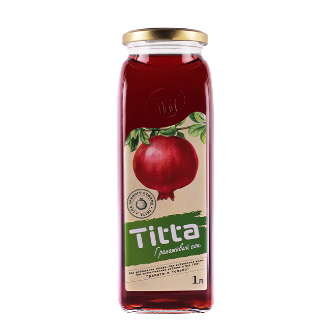 Նկարագրություն Titta նուռը 100% բնական հյութ է, որը պատրաստվում է թարմ, հյութալի նռներից։ Հյութեղ և անուշաբույր նուռը ենթարկվում են սառը, ուղղակի ճզմման, ապա վերամշակվում են մանրաթելերի մի մասի պահպանմամբ՝ հյութին մրգի բոլոր օգտակար հատկություններն ու համը փոխանցելու համար: ՉԻ ՊԱՐՈՒՆԱԿՈՒՄ ՋՈՒՐ ԵՎ ՇԱՔԱՐԱՎԱԶ: